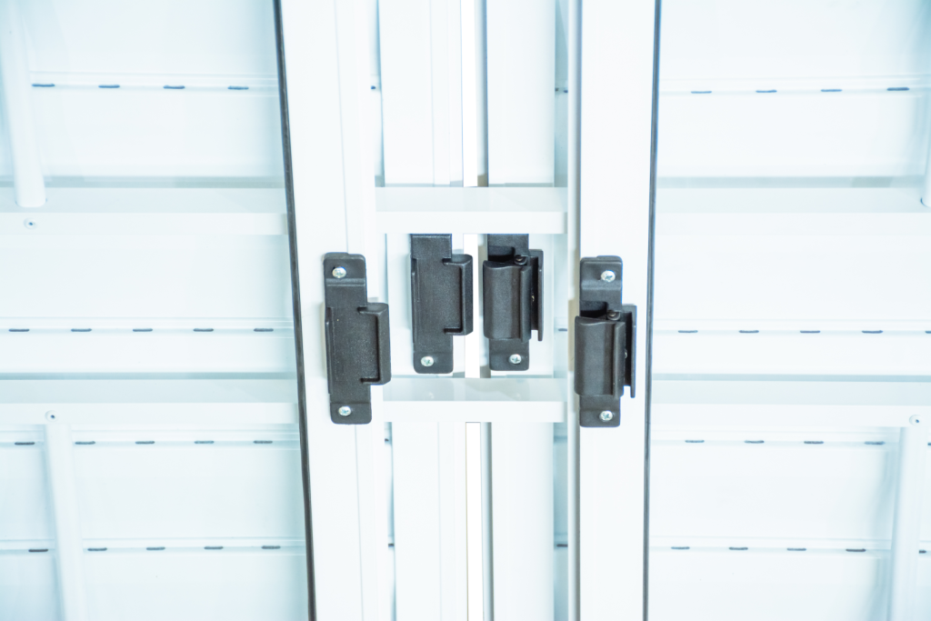 Pintura eletrostática na cor Branca, grade de proteção, fecho especial, grade de proteção opcional. Vidros incolor instalados, incorporando ao produto com acabamento diferenciando.
